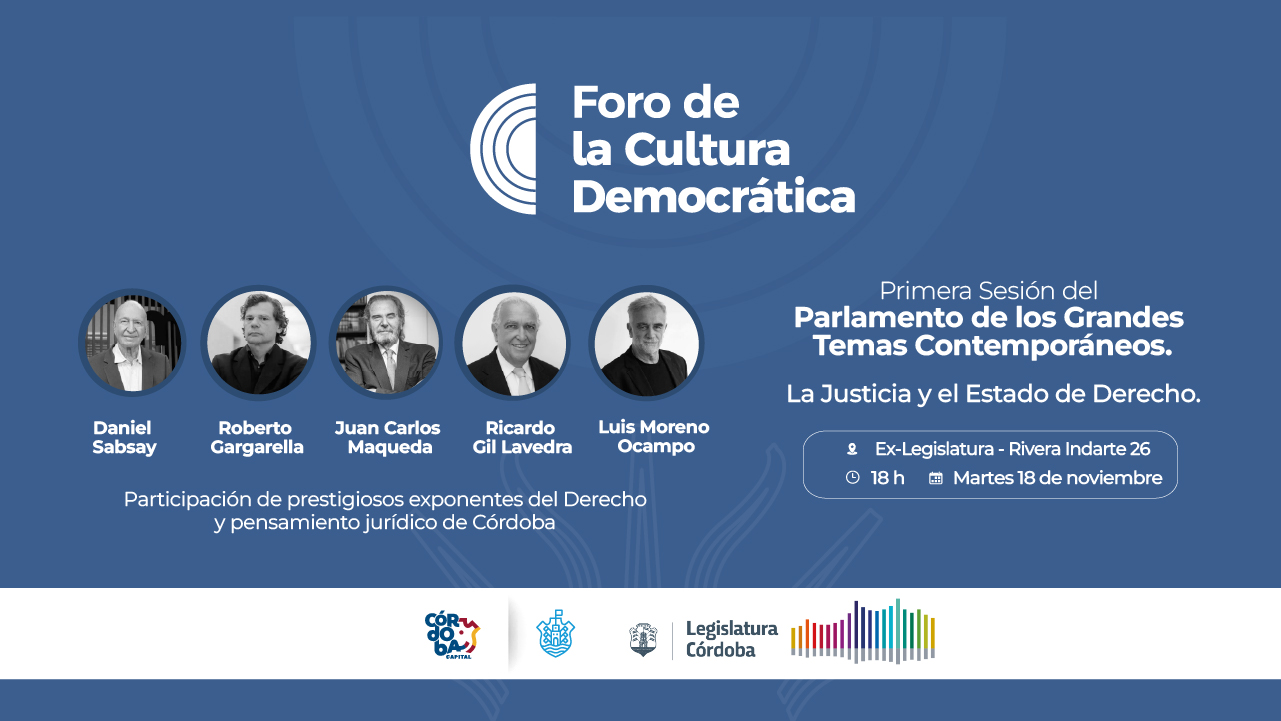 Por el diálogo y contra el autoritarismo, Córdoba lanzará este martes el Foro de Cultura Democrática en la sede de la Legislatura Histórica