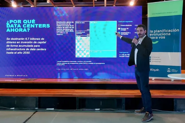 Lerici explicó que “el tema adquirió mucha relevancia a partir del reciente anuncio de Sam Altman, CEO de Open IA, de instalar una infraestructura de este tipo en Patagonia, pero hay que tener en cuenta que más allá de la inversión de Open AI, el país, la región y Neuquén tienen las condiciones ideales para el desarrollo de esta industria”.