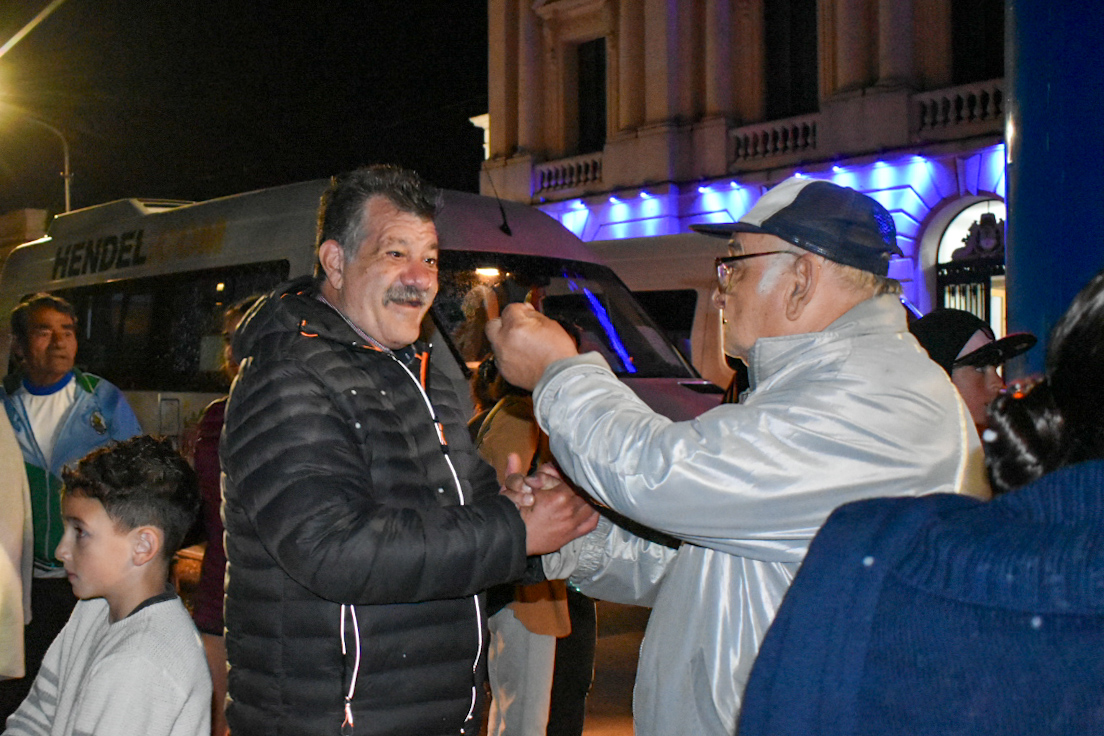 Desde las escalinatas de ingreso al Palacio, el intendente Sergio Barenghi recibió a la delegación y luego se acercó a saludar a participantes y familiares.