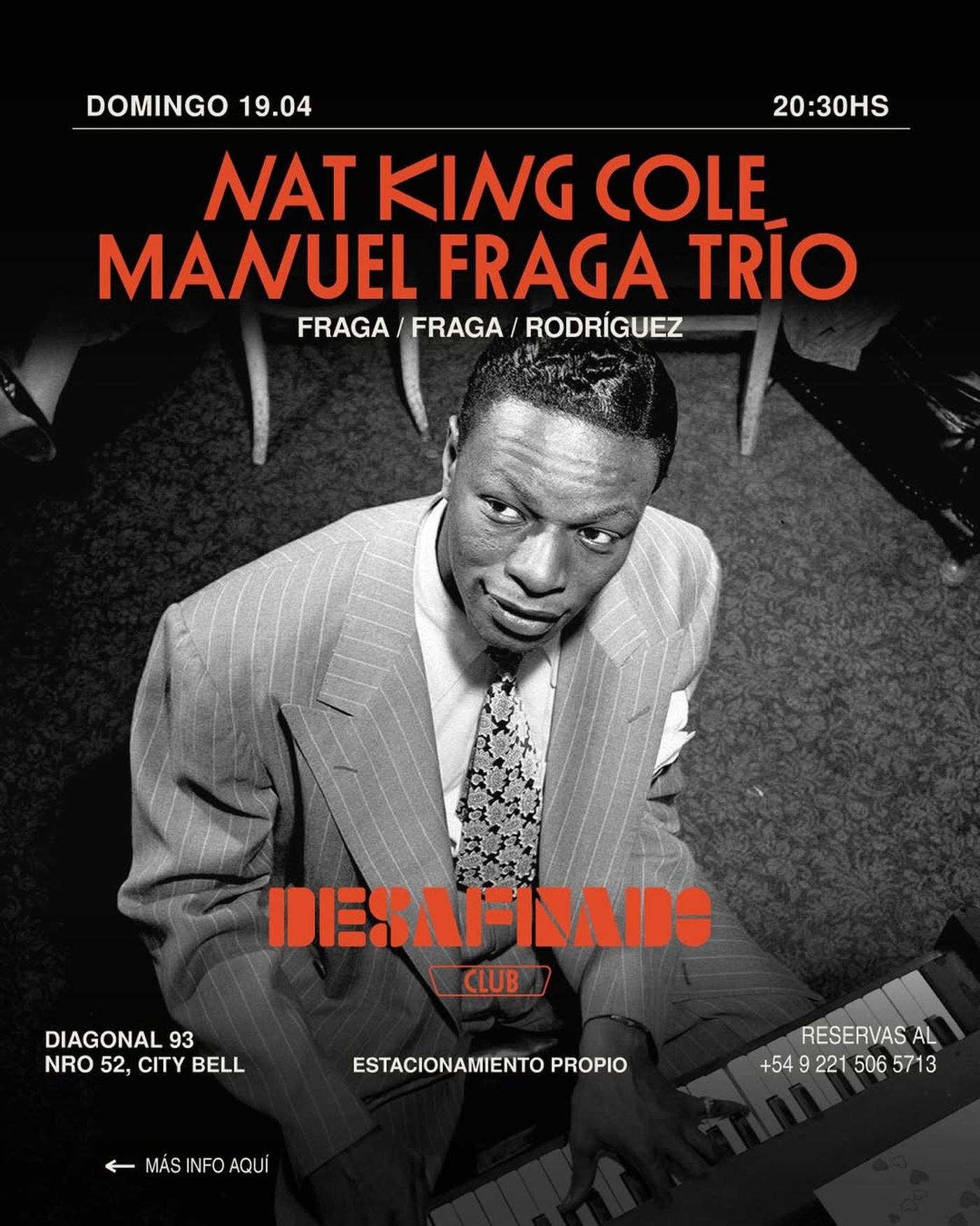 NAT KING COLE por el MANUEL FRAGA TRÍO en el ClubFraga – Fraga – Rodríguez DOMINGO 19.04 20-