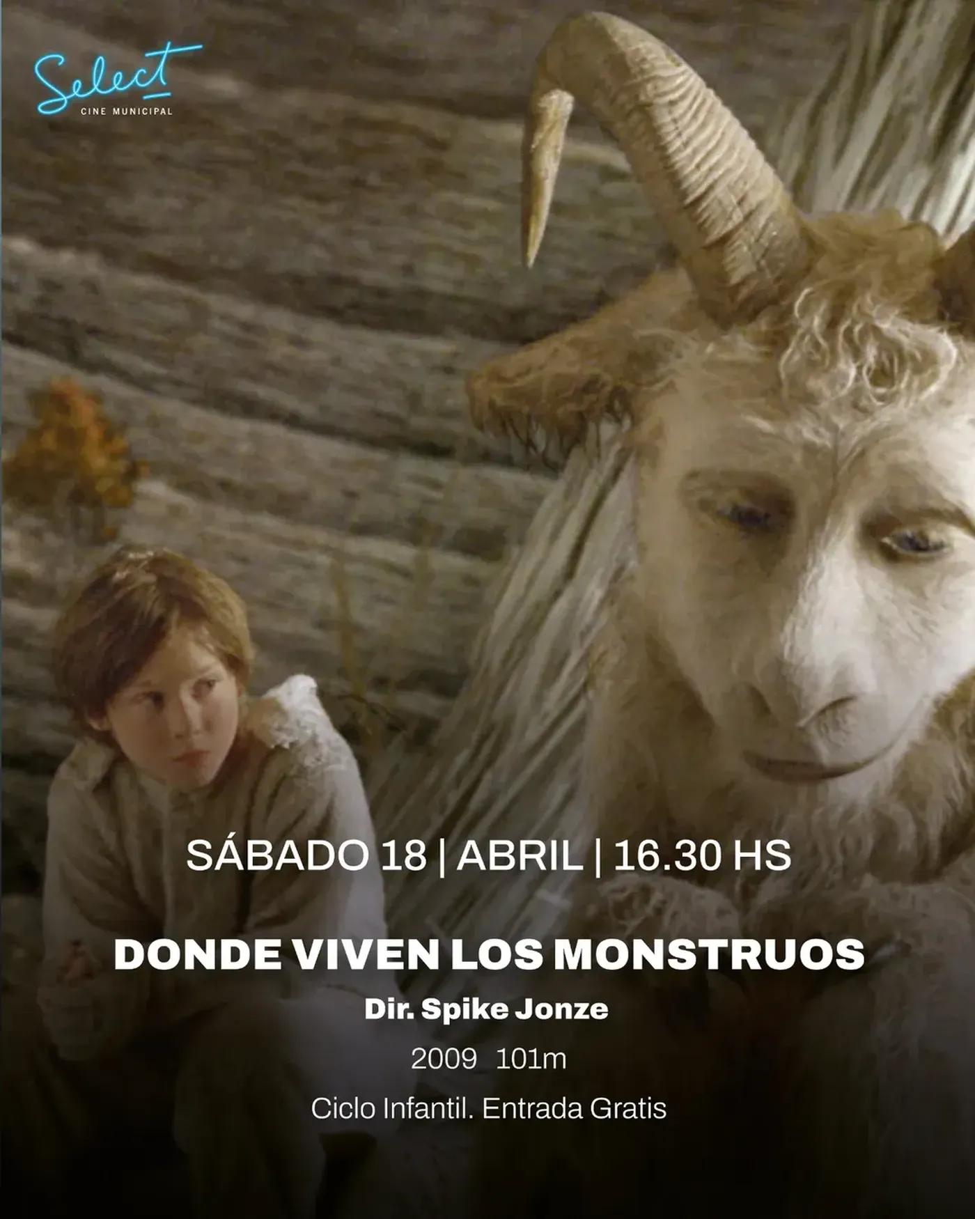 - 16.30 – Cine Select: Donde viven los monstruos