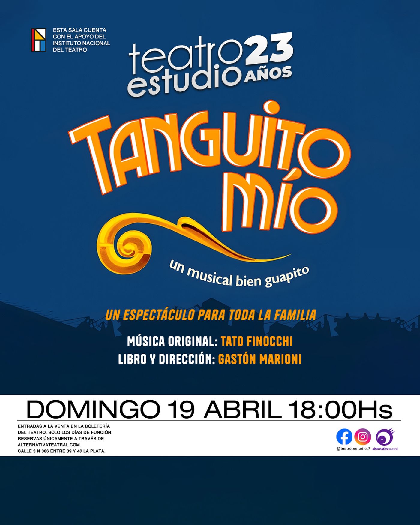 TEATRO ESTUDIO 22 AÑOS – TEMPORADA 2026Domingo 19 de abril – 18-00 HorasTANGUITO MIO, UN MUSIC