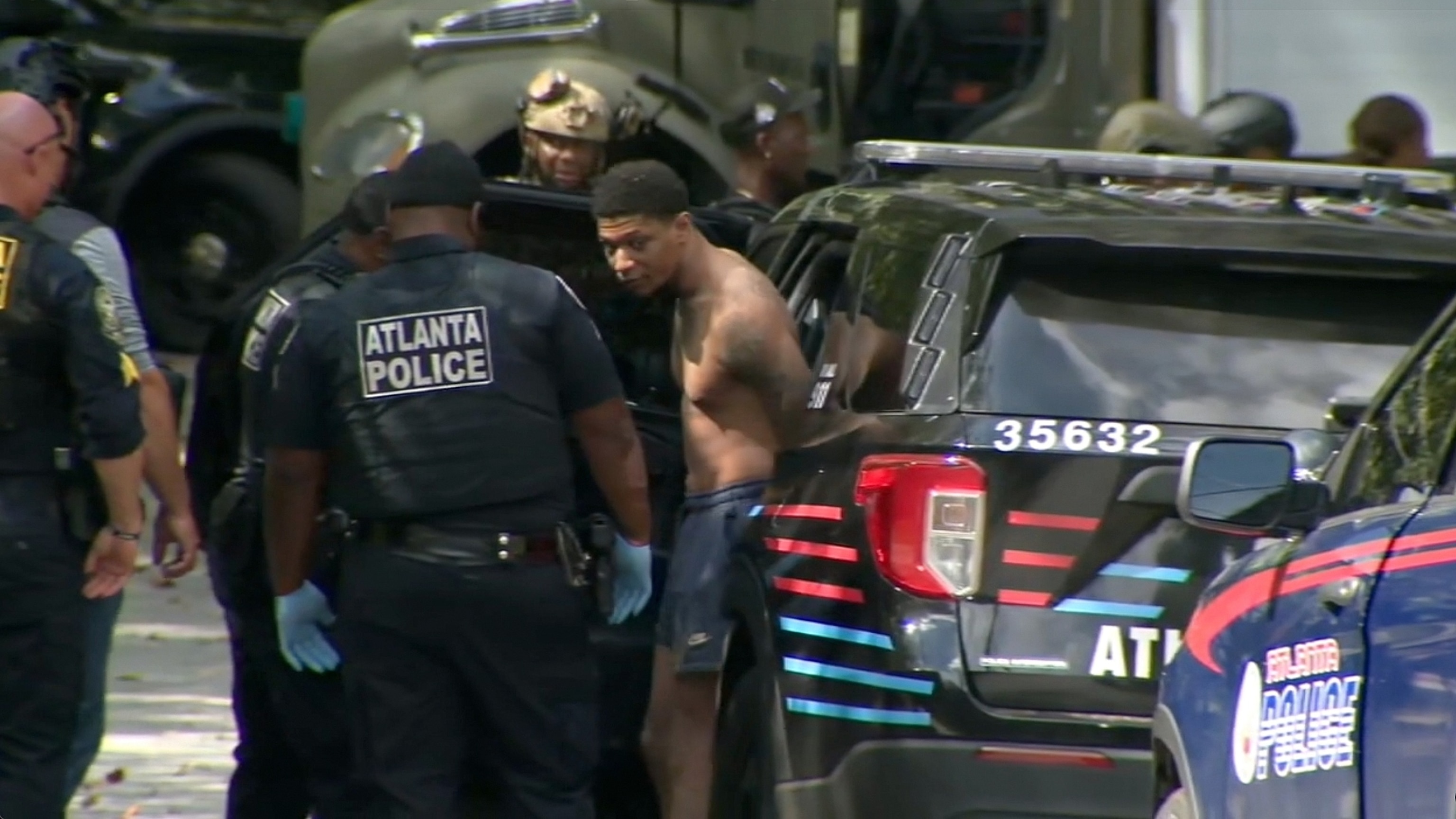Derrick Groves is seen after being apprehended at a residence in Atlanta, Oct. 8, 2025.