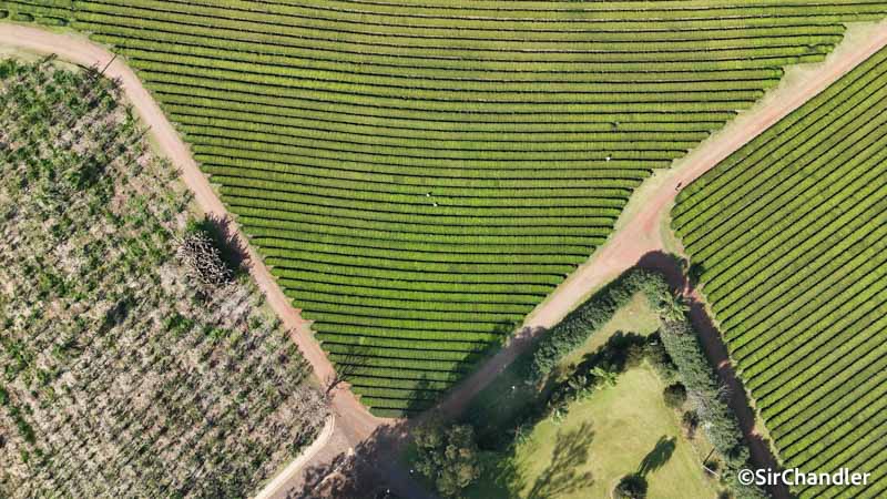 Los zurcos que hay entre las plantas son los que quedan para el sistema de cosecha con tractores especiales que va cortando la hoja, cosa que arranca en noviembre si mal no recuerdo y sigue por muchos meses. Pero no justo en el Julio o agosto