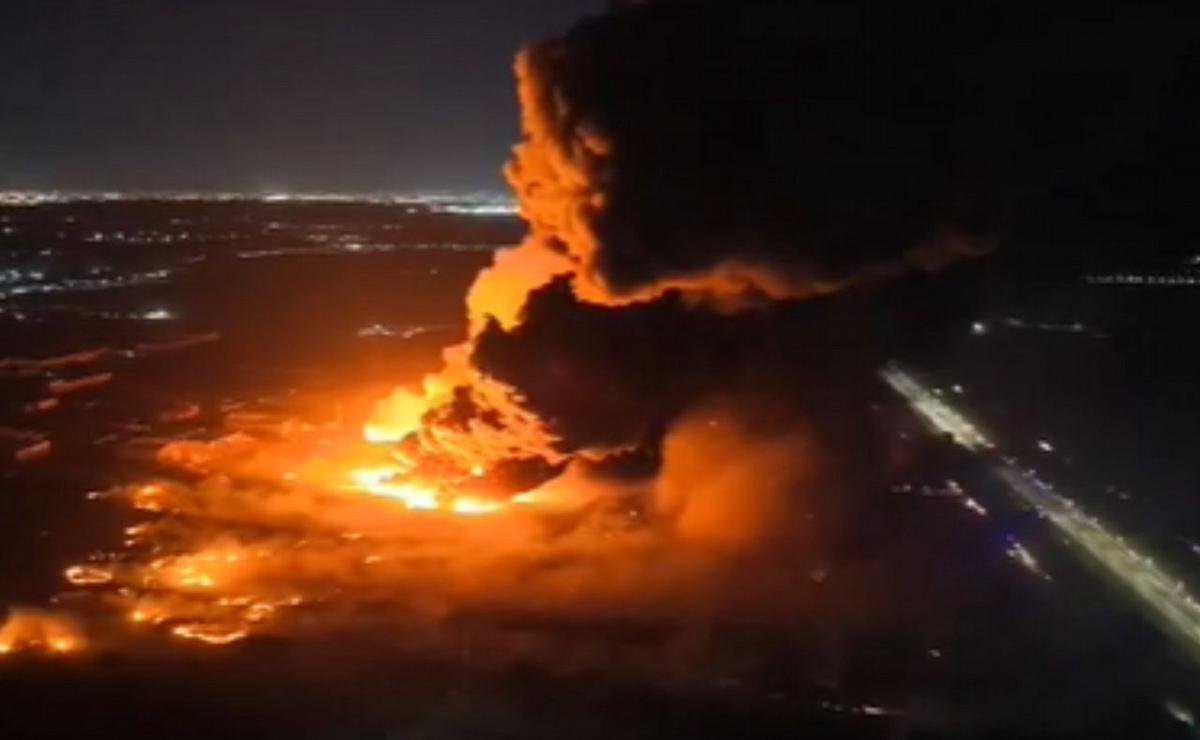 Una bola de fuego: el impresionante video desde el aire del incendio en Ezeiza