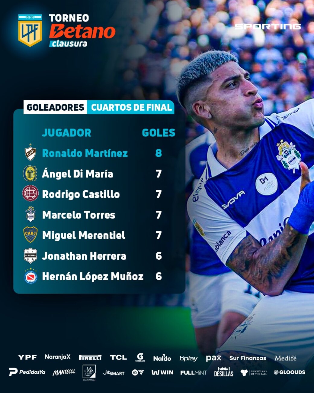 Ronaldo Martínez registró 8 gritos sagrados en esta campaña y se estableció como el jugador más efectivo frente a la portería rival. Se quedó con la bota de oro en el campeonato por encima de Angel Di María, la figura de Rosario Central que marcó 7 goles. También con 7 tantos quedaron Miguel Merentiel (Boca Juniors), Rodrigo Castillo (Lanús) y Marcelo Torres (Gimnasia y Esgrima de La Plata).