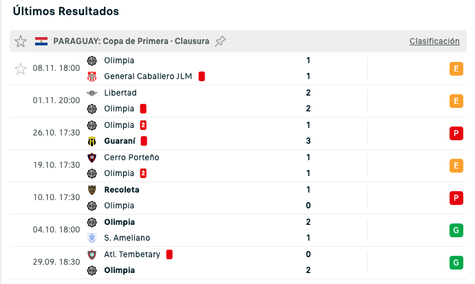 Con la paridad registrada ante el «Rojo Mallorquino», Olimpia ya lleva 5 partidos al hilo sin poder ganar; con tres empates y dos derrotas. Su última victoria había sido el pasado 4 de octubre cuando derrotó por 2-1 a Sportivo Ameliano, por la jornada 15 del campeonato.