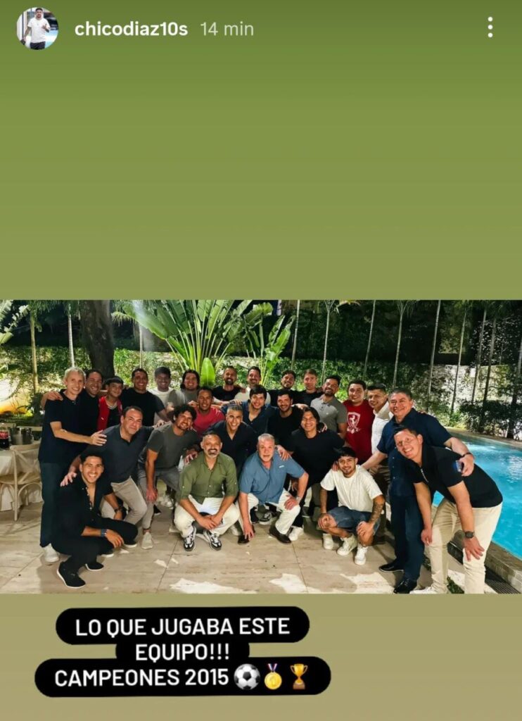 El «Chico» Díaz publicó en sus redes sociales, la foto de un reencuentro del plantel completo que se coronó campeón de la mano de Roberto Torres, quien había tomado el equipo como interino y terminó coronándose del Apertura 2015.