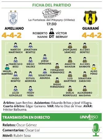 Guaraní, que está igualado en puntos con Cerro Porteño en la carrera por el título del torneo Clausura 2025, visitará este domingo a Sportivo Ameliano, desde las 17:30 en el estadio «La Fortaleza del Pikysyry», con la misión de colocarse como único líder.