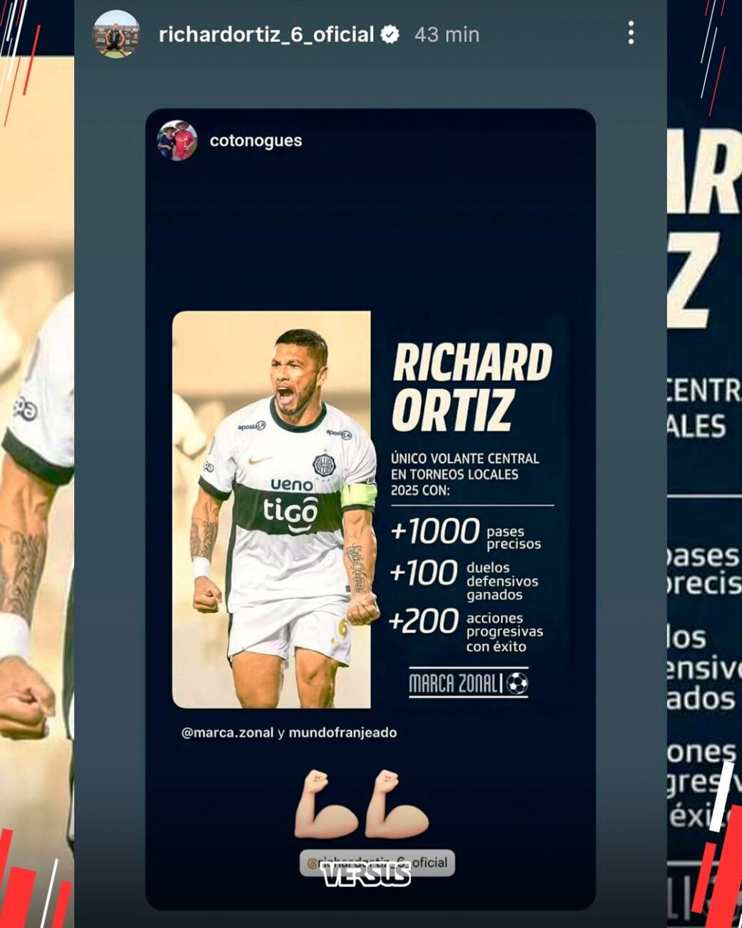 El titular de Olimpia compartió una historia en su cuenta oficial de Instagram, donde se ven los números impresionantes de Richard en la temporada.