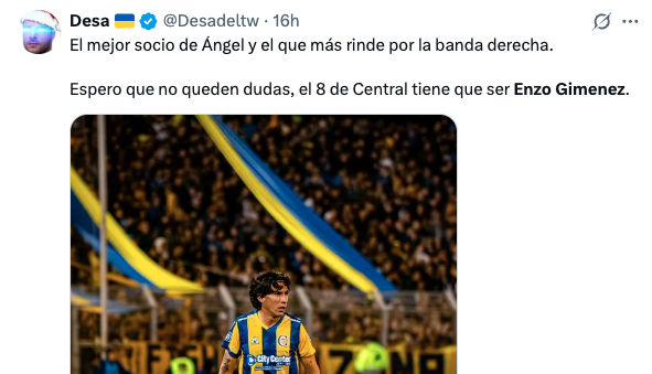 Para los hinchas de Rosario Central, Enzo debe ser titular indiscutible, ya que incluso lo catalogan como el mejor socio de Di María.