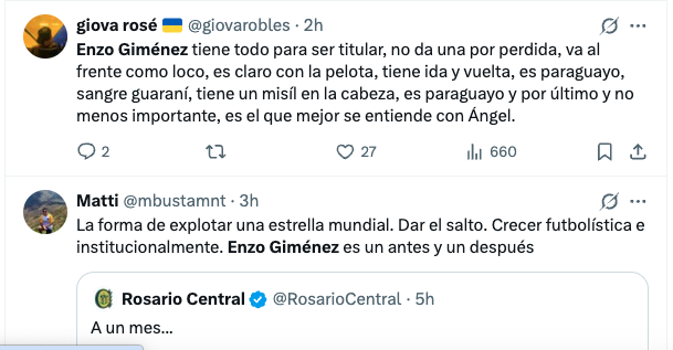 Rosario es el equipo sensación del fútbol argentino y tiene a un paraguayo en sus filas, que cada vez que ingresa, causa furor en los «canallas». Enzo Giménez fue de vuelta figura y los hinchas exigen que sea titular indiscutible.