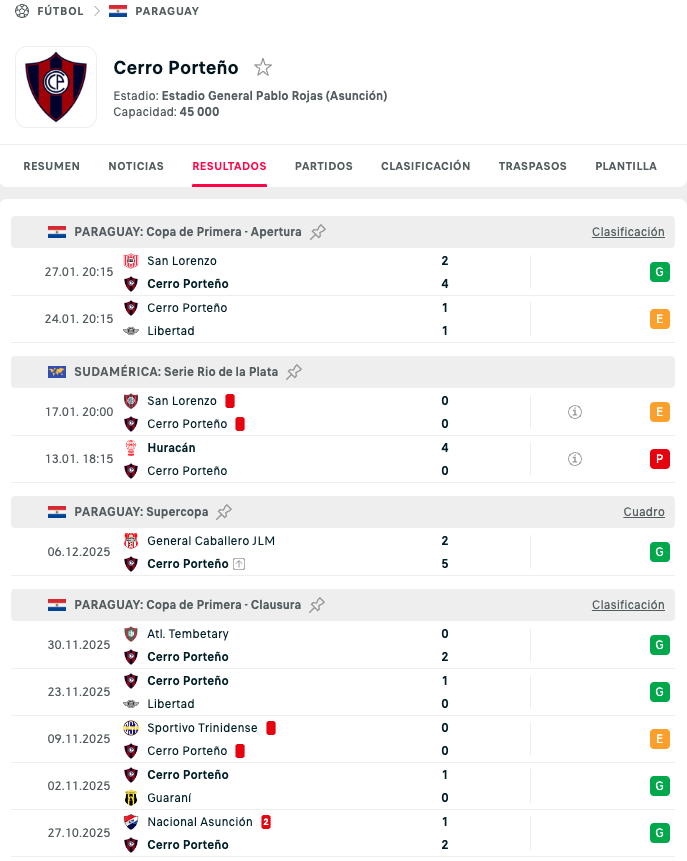 En ese lapso también registró una goleada sobre General Caballero de Juan León Mallorquín por la Supercopa Paraguay 2025.