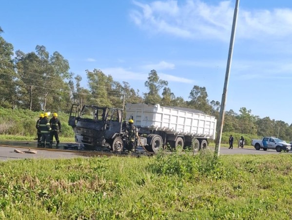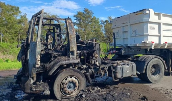 El camión incendiado quedó atravesado sobre la calzada, a escasos metros de la pasarela frente al establecimiento carcelario, lo que provocó la interrupción total del tránsito en todos los carriles y demoras significativas en ambos sentidos de la ruta.