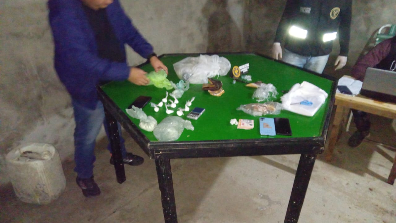 En el lugar se secuestraron pequeñas cantidades de cocaína, unos 5 gramos, pero lo más relevante fue el hallazgo de 4.377.500 pesos en efectivo, además de elementos utilizados para el fraccionamiento de droga, como tijeras, bandas elásticas y un teléfono celular.